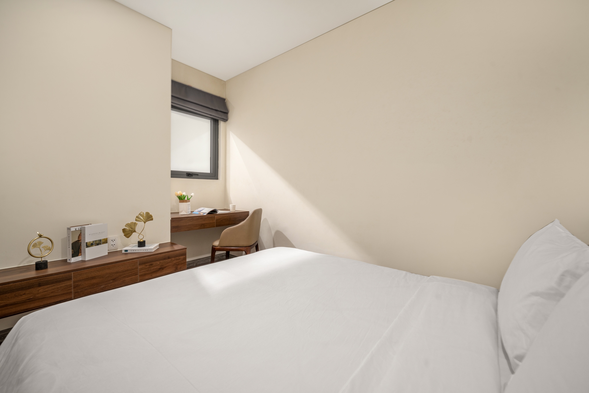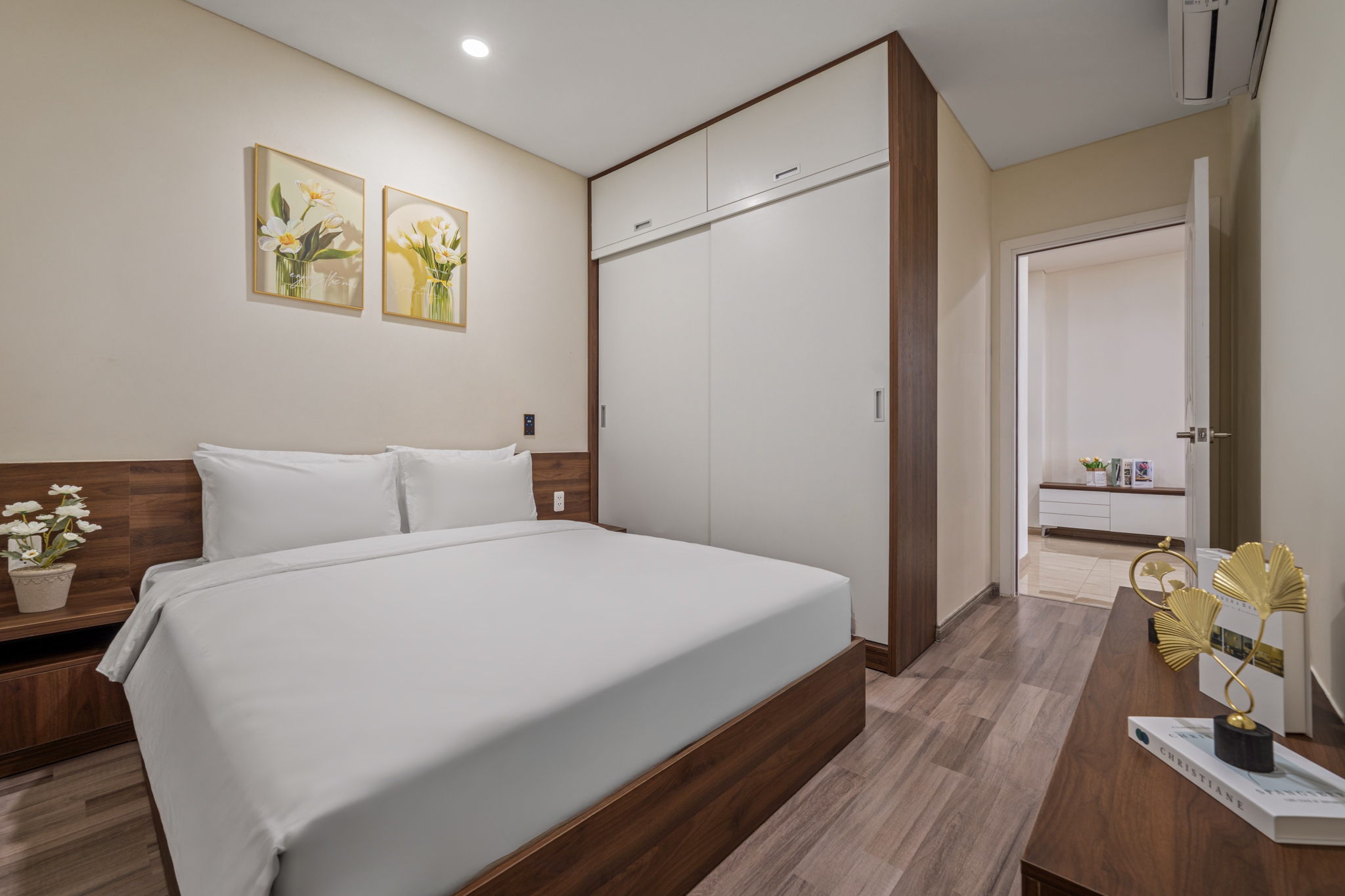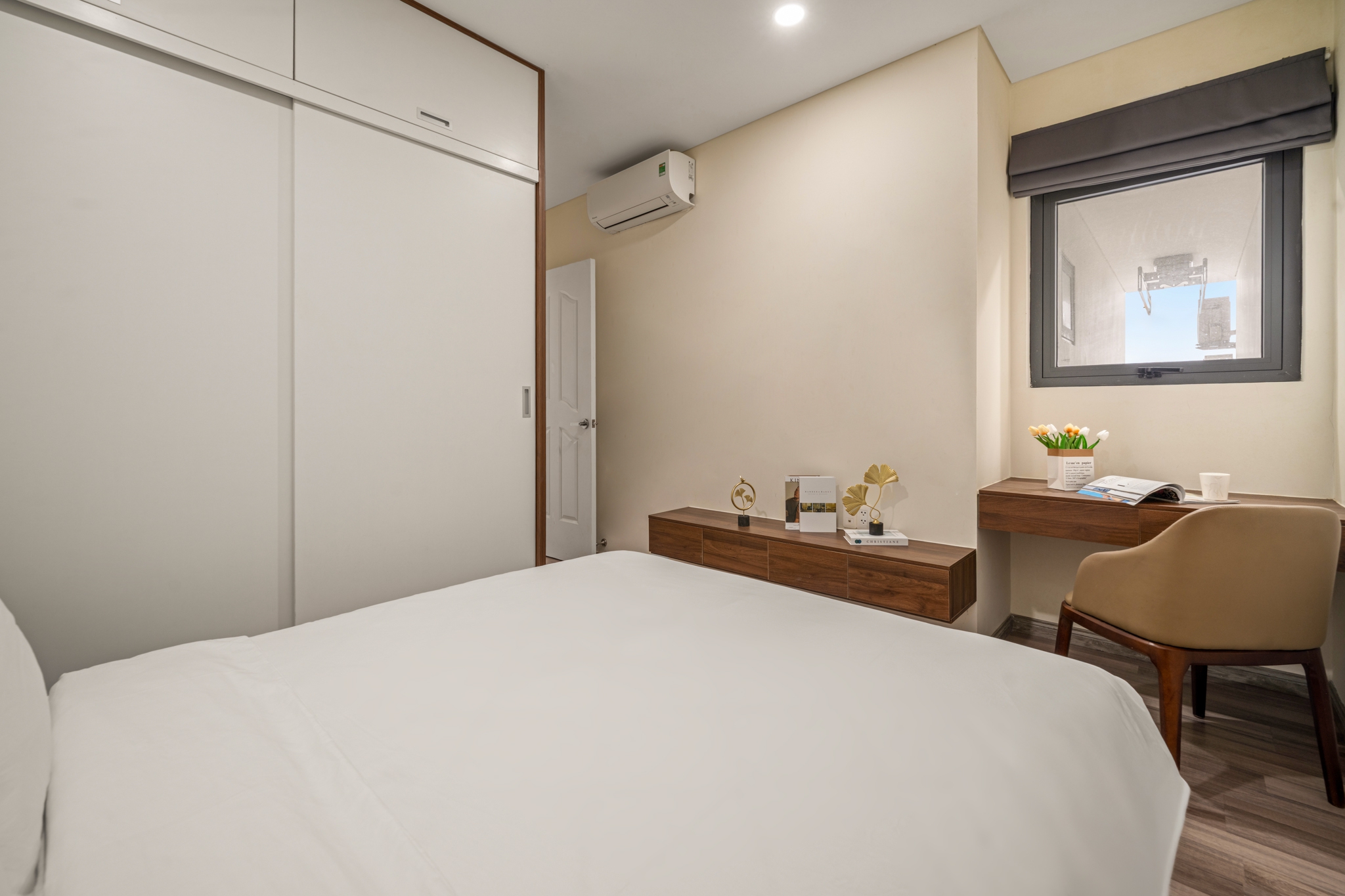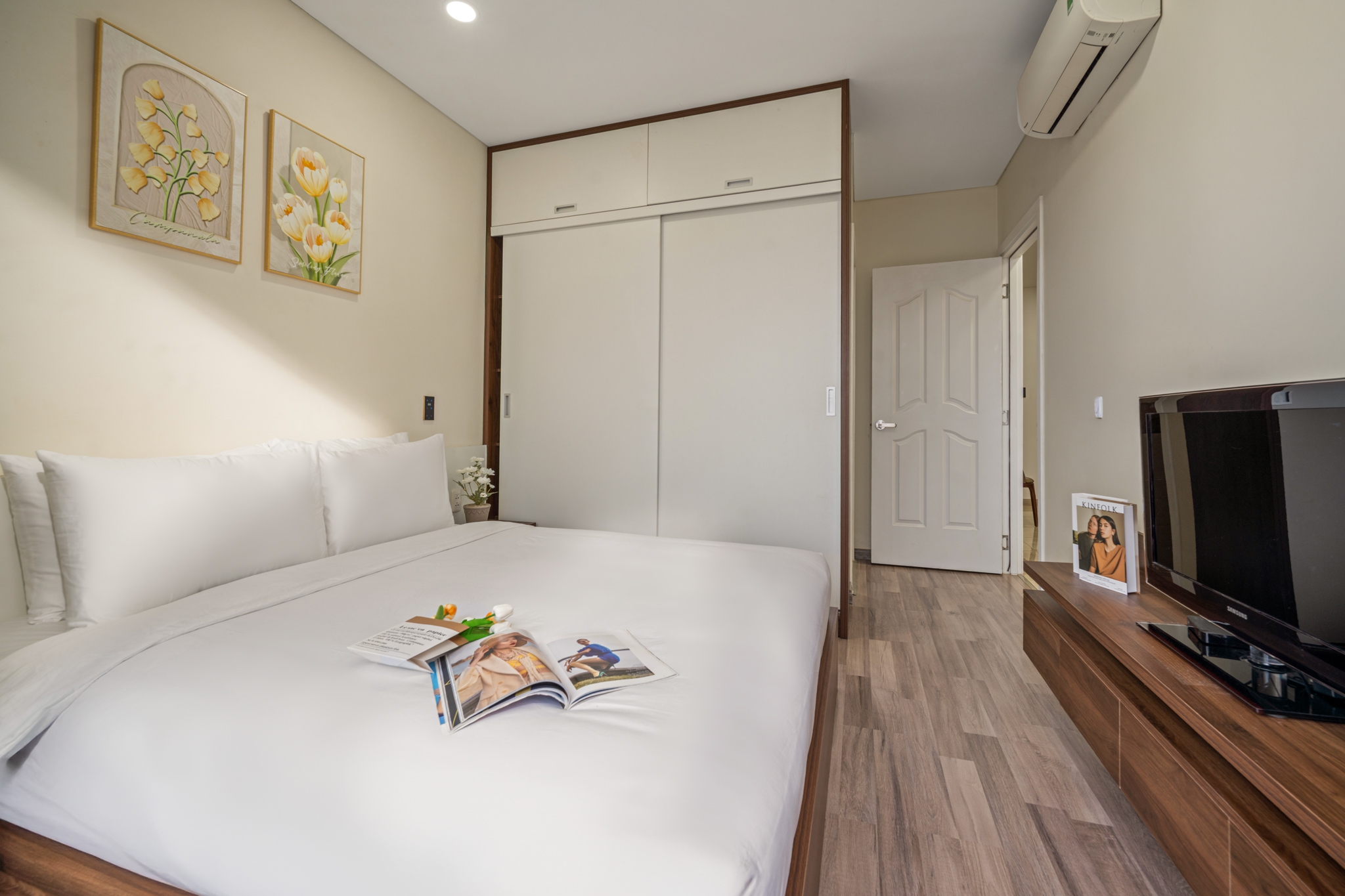 High-class furniture: Inverter air conditioner, leather sofa, memory foam bed, Side by Side refrigerator.